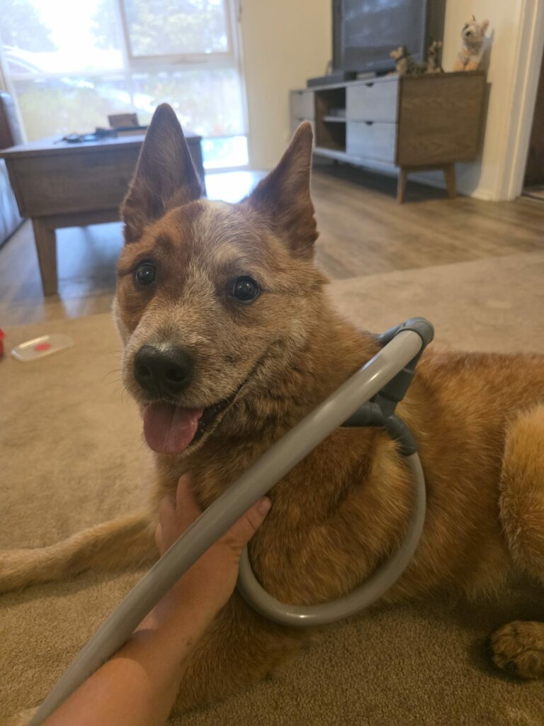 Pinot was at the beginning of stage 4 IVDD (Intervertebral Disc Disease), she wasn’t completely paralysed in her hind legs, but was close and within 4 sessions she was back up and walking again and able to toilet independently. She had weekly pulses for 10 weeks and she now only has maintenance sessions on a regular basis. Surgery was declined by her owners and her recovery was very successful due to her owners being very diligent in keeping her confined and quiet between her pulse sessions. She is now back to playing with her brother and running around happily.